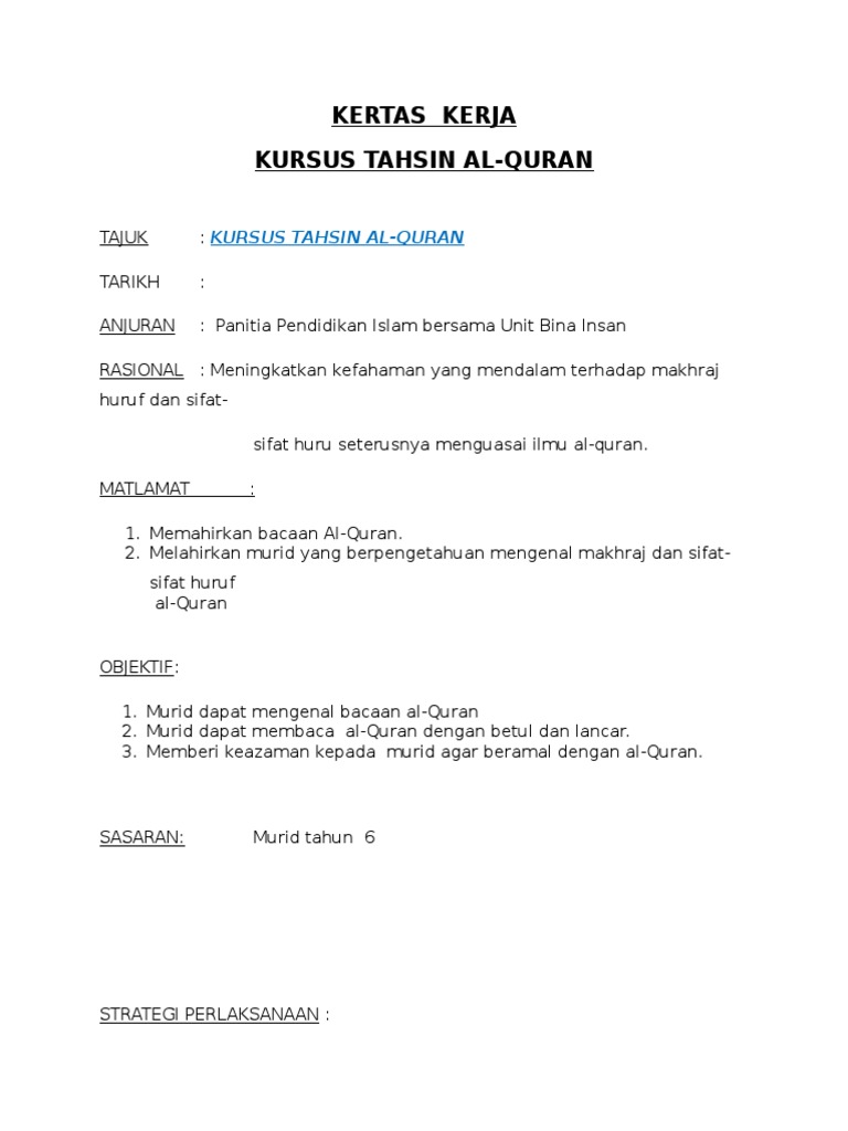Contoh Kertas Kerja Kelas Mengaji